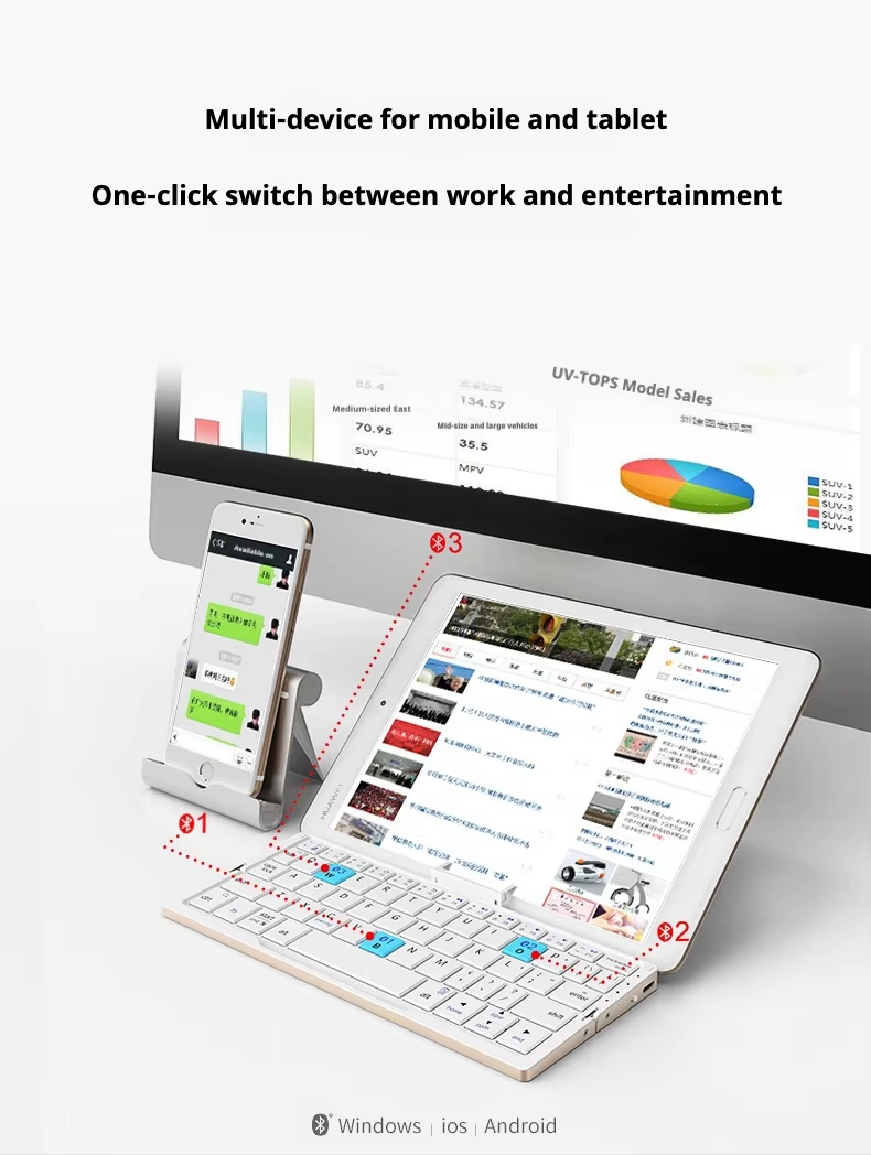 Wireless Mini Keyboard Phone Holder Ultra Thin Aluminum Alloy Portable Folding Keyboard Suitable for IPad Mobile Phone Tablet
